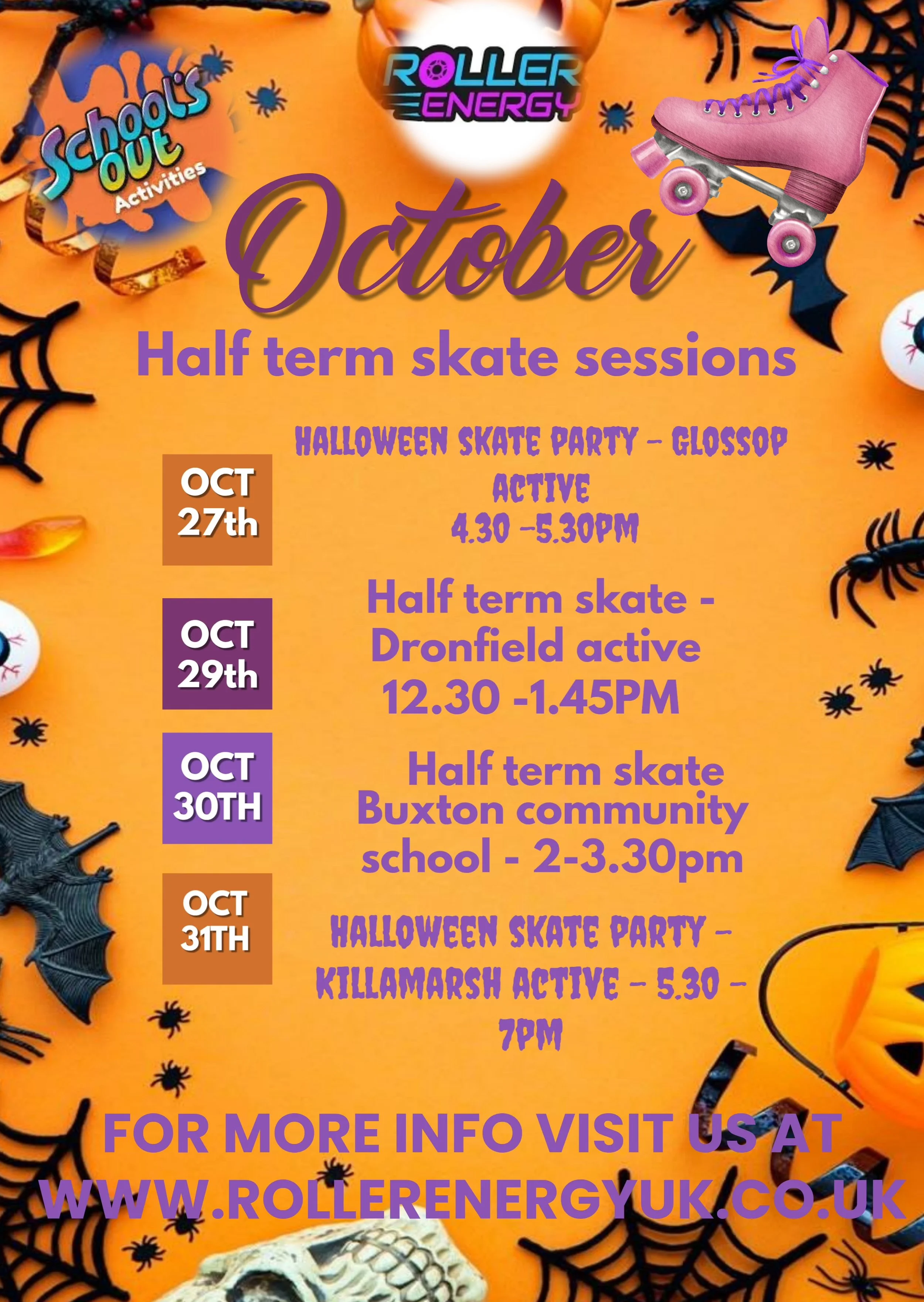Holiday Sessions… HOLIDAY SCHEDULE:Monday 27th ( Halloween party) - Glossop LC: 4.30pm - 5.30pmWednesday 29th Dronfield Active: 12.30 - 1.45pmThursday 30th - Buxton Community School: 2 - 3.30pm